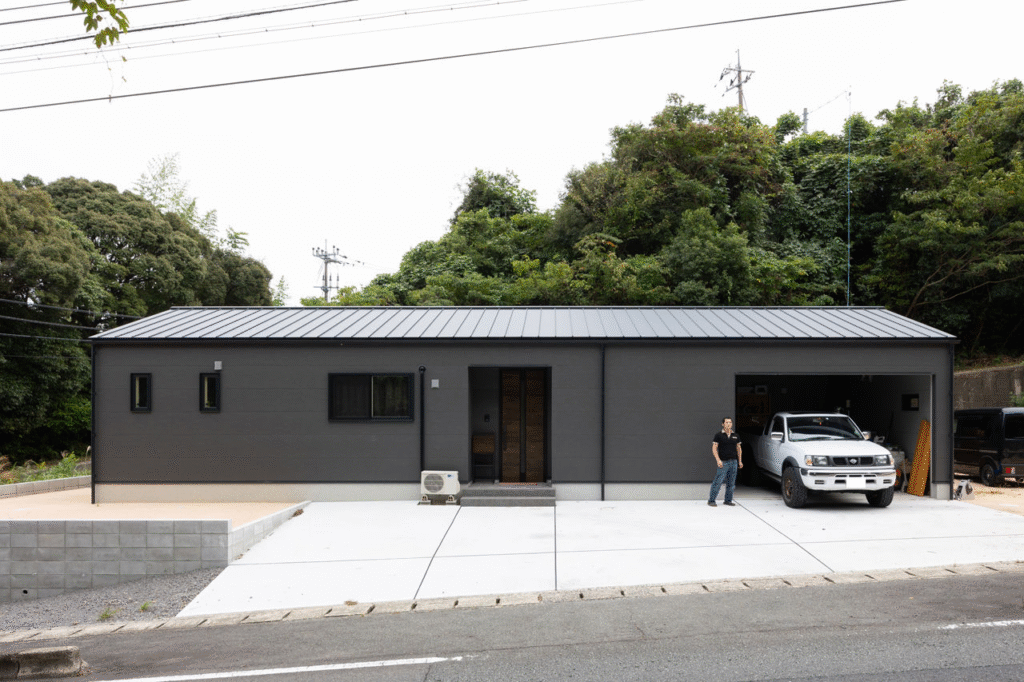 リモートワークを機にリゾート地へ移住し、愛犬との暮らしを楽しむ40坪の平屋ガレージハウスです。