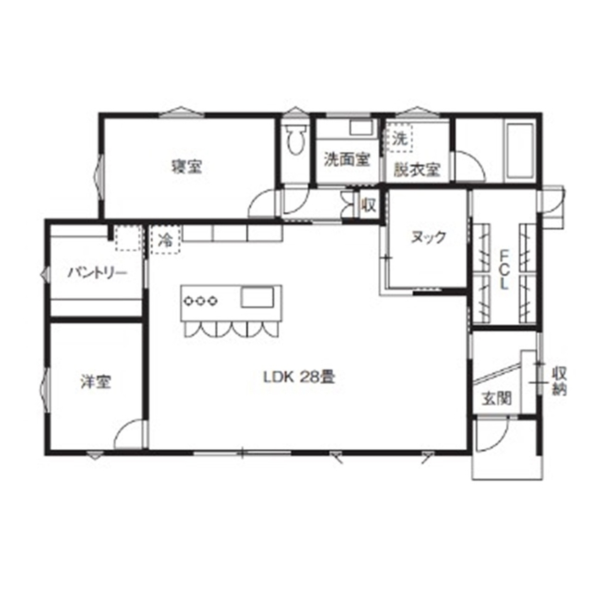 すべての部屋が1フロアにまとまるので、動線が短く使いやすい間取りになっています。