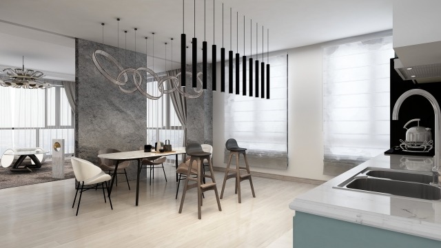 • ダウンライトで天井をすっきりさせ、ペンダントでアクセントをつける